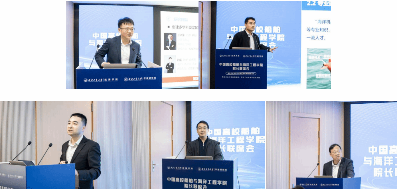 上海交通大学船舶海洋与建筑工程学院王鸿东教授、哈尔滨工程大学船舶工程学院院长倪宝玉教授、浙江大学海洋学院常务副院长瞿逢重教授、华中科技大学船舶与海洋工程学院院长李威教授、西北工业大学航海学院院长潘光教授分别作专题报告。