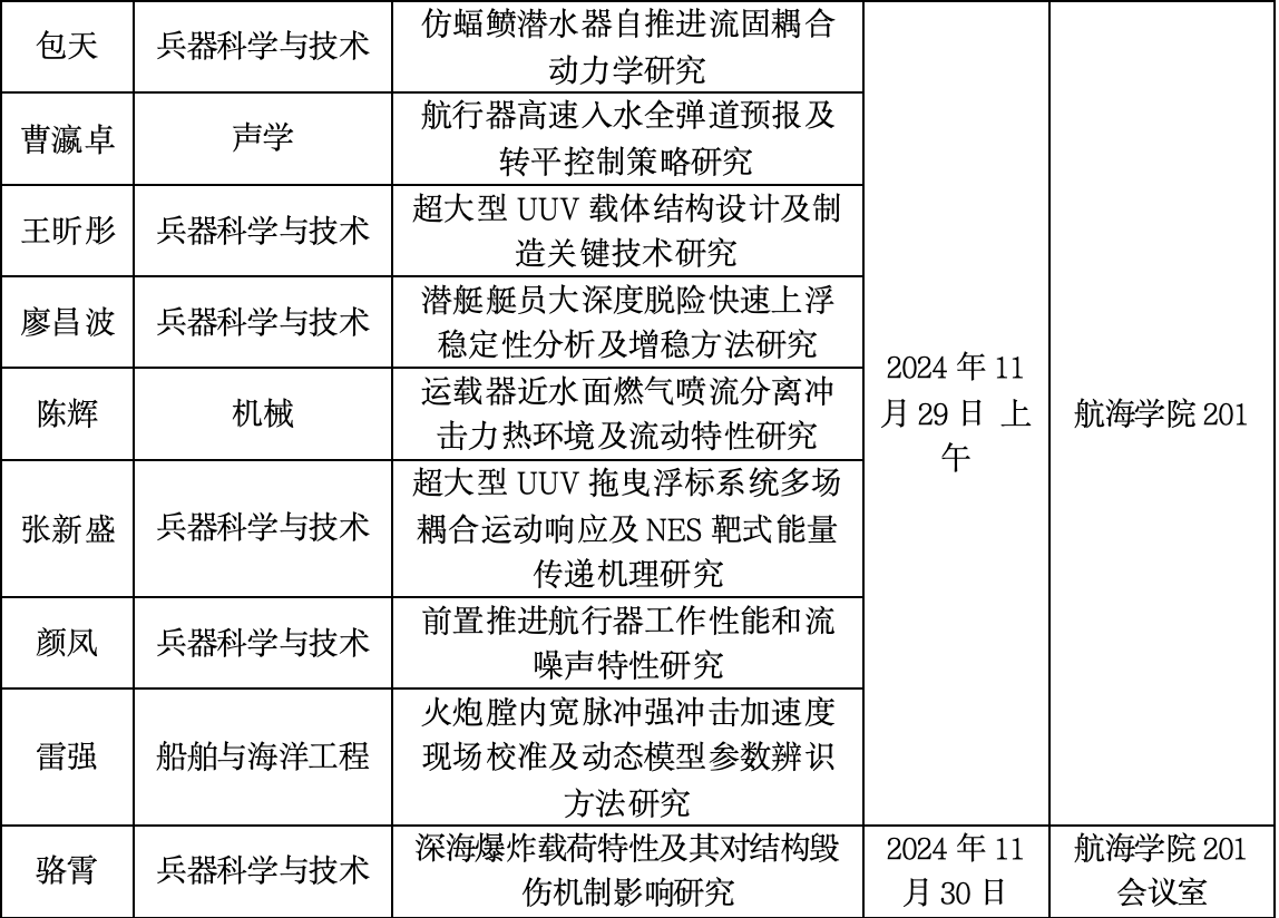 为深入推进学术型博士研究生培养机制改革,完善博士生考核机制,加强博士生培养过程管理,全面提高博士生培养质量,按照《西北工业大学学术型博士研究生培养过程管理实施细则》要求,将于2024年11月29、30日组织博士研究生开题公开答辩报告会,现将答辩安排公告如下: