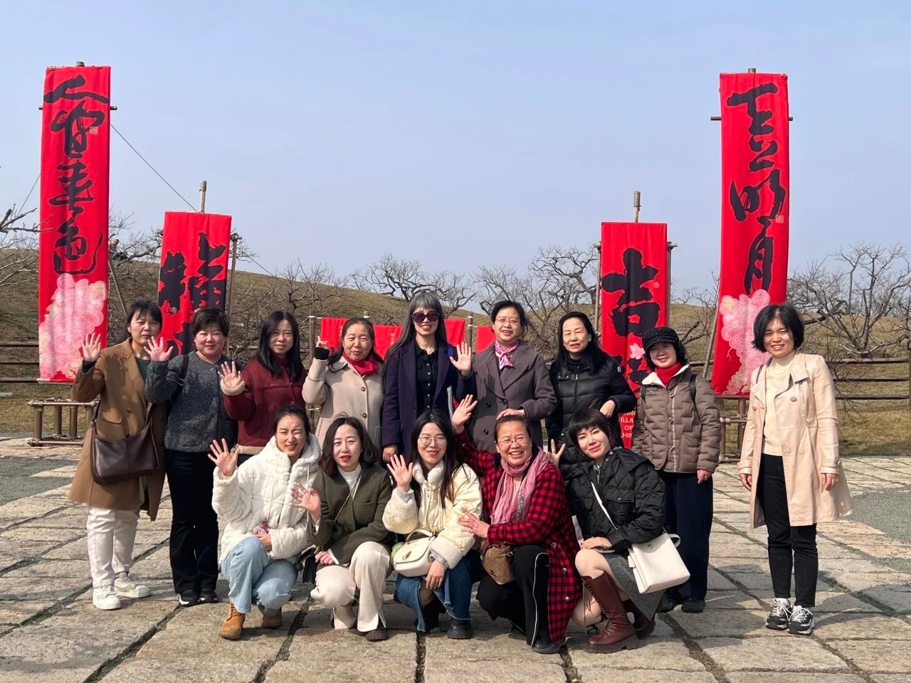 唐村梅园内,点点红梅或白梅,在枝头肆意绽放,如繁星洒落人间。女教师们信步其间,衣袂与花枝共舞,眼眸被这烂漫春景点亮,欢声笑语回荡在梅林,为这方天地添了灵动气息。