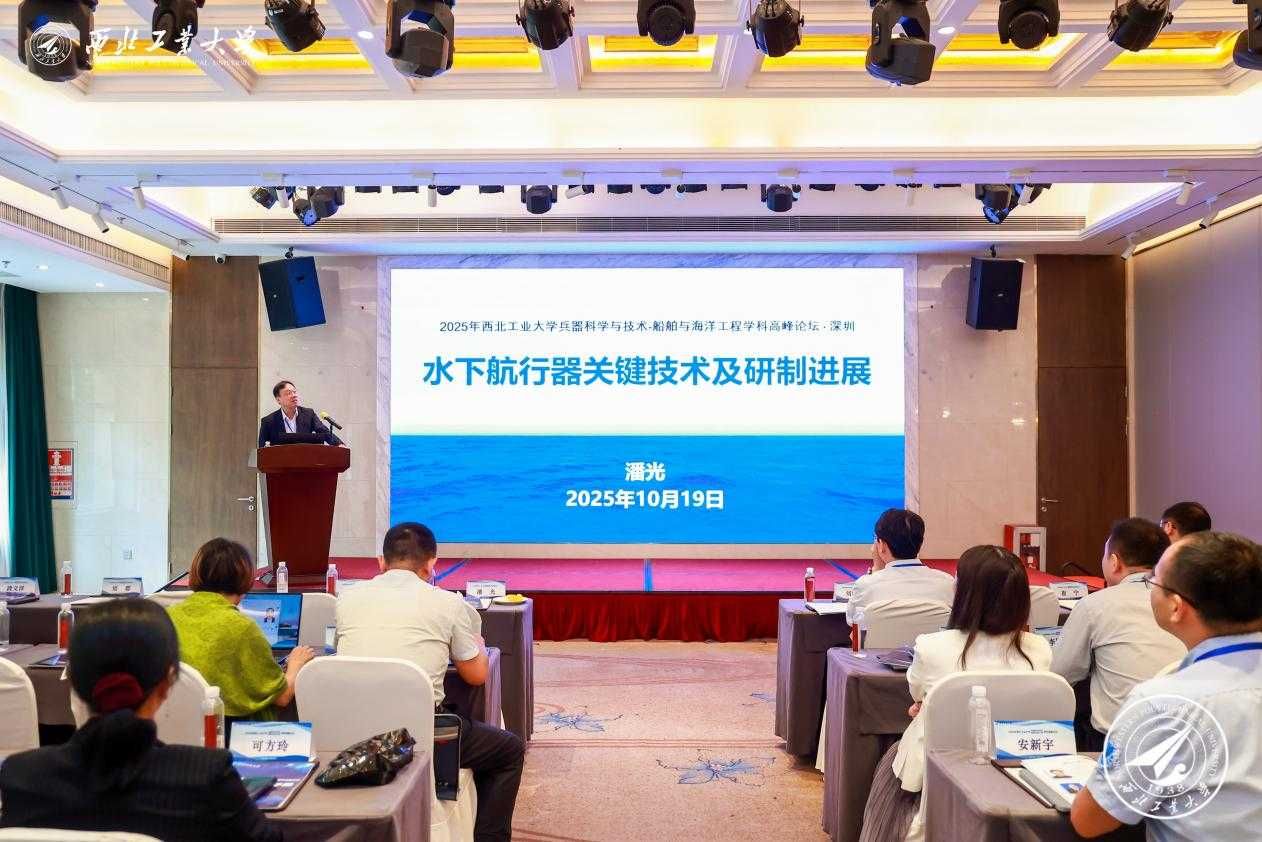 10月19日,2025年西北工业大学兵器科学与技术-船舶与海洋工程学科高峰论坛在深圳成功举办。本次论坛由西北工业大学主办,西北工业大学发展规划处、西北工业大学航海学院、西北工业大学深圳研究院联合承办。论坛以“学科交叉融合·海洋科技创新”为主题,围绕科技前沿和研究热点进行交流和研讨。深圳市海洋发展局朱文裕调研员、深圳市委军民融合办公室刘郡副书记、深圳市科技创新战略研究中心曹达华副主任,以及相关行业院所、兄弟高校专家学者、校相关部门负责人、航海学院师生代表等近200人参加论坛。论坛开幕式由西北工业大学航海学院副院长曾向阳主持。