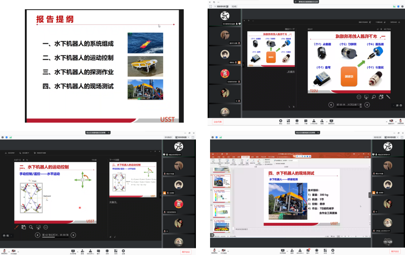 2021年11月11日晚上19点,航海学院举办创新创业文化月系列活动之一,上海理工大学机械工程学院副教授褚振忠应邀以线上会议的形式,为学院师生作“水下机器人的设计与开发”的学术报告。会议由杜朝辉老师主持,廉杰副教授、张晓燕副教授、海洋工程大类本科生和航海学院研究生全体同学在线上参会。