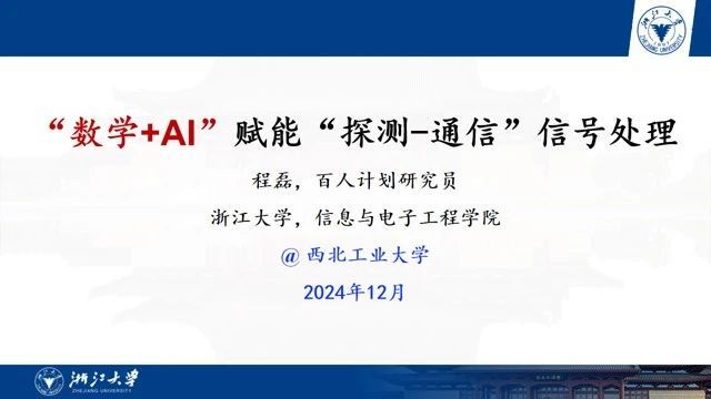 12月1日,浙江大学“百人计划”研究员程磊应航海学院刘雄厚教授邀请,在学院204会议室为师生作《“数学+AI”赋能“探测-通信”信号处理》专题学术报告。此次报告会由刘雄厚教授主持,吸引学院20余名师生前来参会。