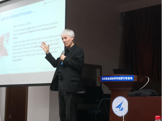 Knoll教授首先介绍了从显微镜到图灵等一系列人脑研究的科技里程碑事件。紧接着,作为HBP的SP10神经机器人平台负责人,Knoll教授详细介绍了该机器人平台的研发最新成果、相关实验影响资料、机械运行原理以及未来产业化方向等。同时,教授还介绍了运用嵌入式控制性闭环系统的神经机器人项目、类人机器人项目等。报告结束后,院长潘光代表航海学院向Knoll教授赠送纪念品,共同探讨招收联合培养博士生和进一步开展科研合作等事宜。
