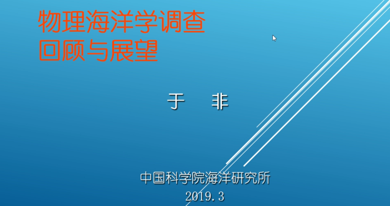 于非研究员首先从物理海洋学的概念及物理海洋学主要研究主题讲起,并指出物理海洋学的三大支撑:理论研究、海洋调查研究和模式研究。海洋调查是开展物理海洋学研究的基础,因此,于非研究员以海洋物理学的调查对象:温、盐、密、流、浪、潮为出发点,逐一介绍了对这些因素进行调查和观测的传感器、仪器、平台和系统。