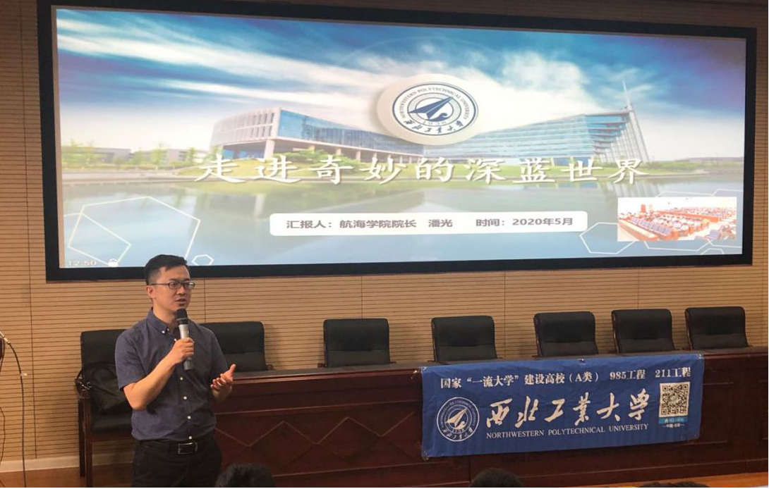 25日中午,宁波效实中学组织两校区拔尖班学生参加本次“领航计划”活动。招生办主任管兴华首先介绍了学校在浙江招生录取情况。随后,潘光院长领航浙江学子《走进奇妙的深蓝世界》。潘院长先从“海洋是什么?”开始发问,结合海洋大事件,以及我国海洋权益面临严峻的考验和挑战,阐述了国家海洋战略的意义。接着,重点介绍了水下航行器和声纳是海洋开发和防卫的重要装备之一,并生动形象的列举了几个典型的应用案例。最后,展示了航海学院与海洋工程大类的基本情况。