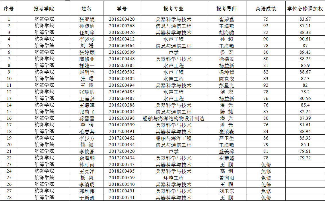 航海学院2019年硕博连读研究生资格审查通过名单公示