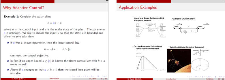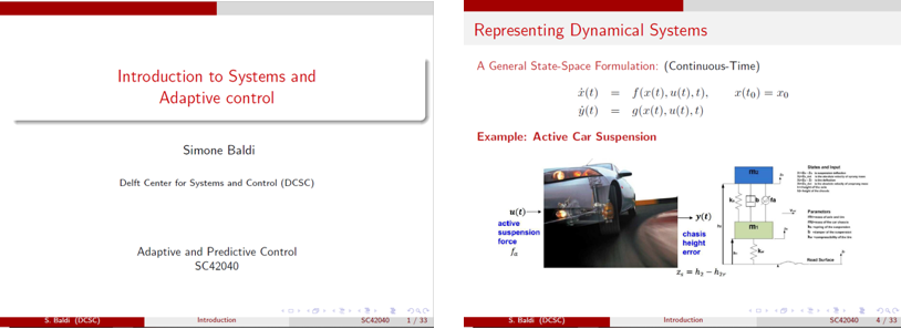 Simone Baldi教授首先介绍了系统的基本概念,为低年级的本科同学奠定控制的基础,然后介绍了控制的基本分类、不同的表述方式以及自适应控制与经典控制方法的不同和优越之处,并给出简单的求解示例和应用实例来介绍自适应控制的基本方法和重要性。