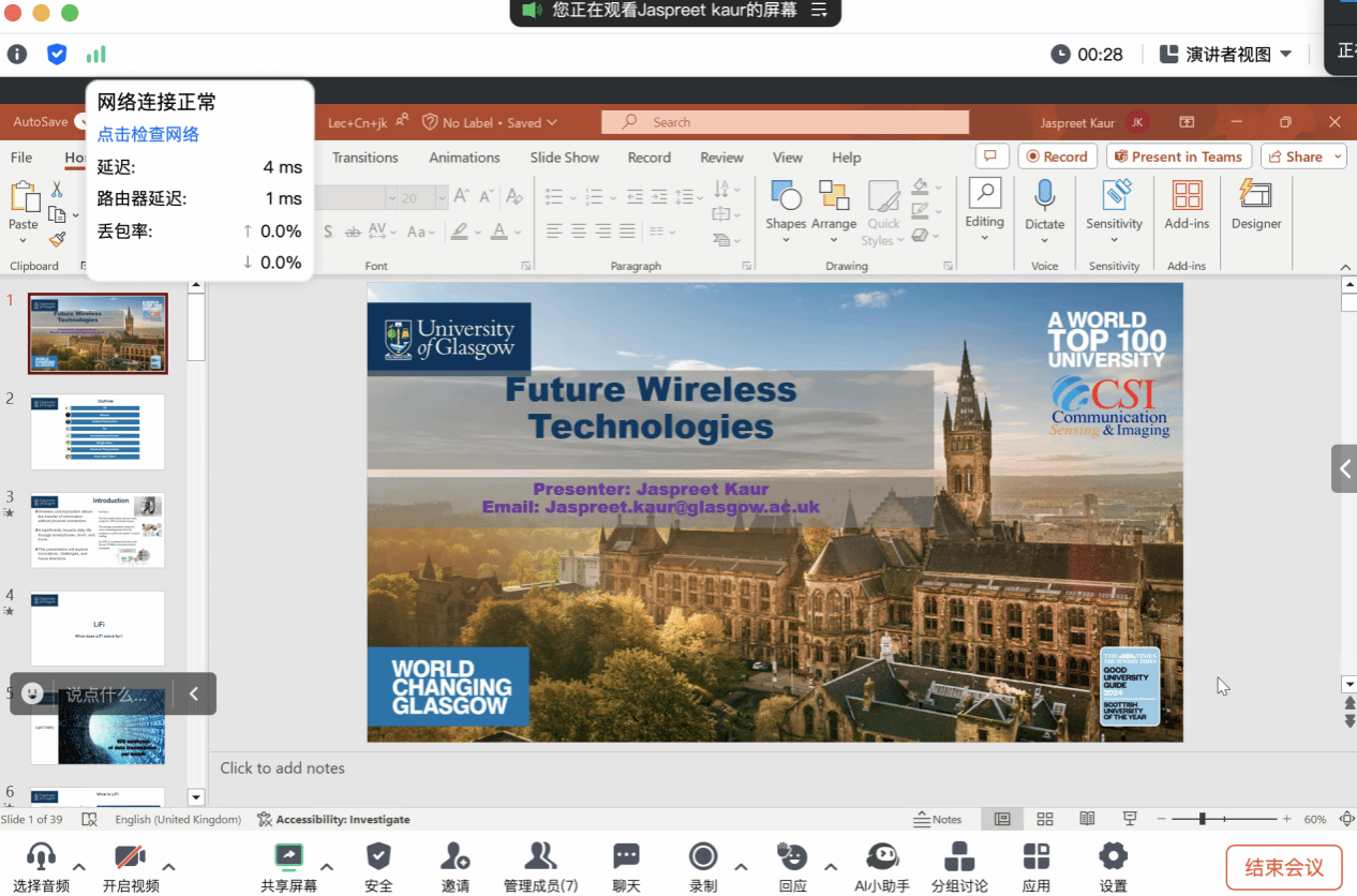 第一节课上,Prof. Qammer H. Abbasi在向学生们自我介绍后,对于格拉斯哥大学及其所在研究组的基本情况进行了简单阐述。最后对于接下来的课程安排进行了简单梳理和预习。