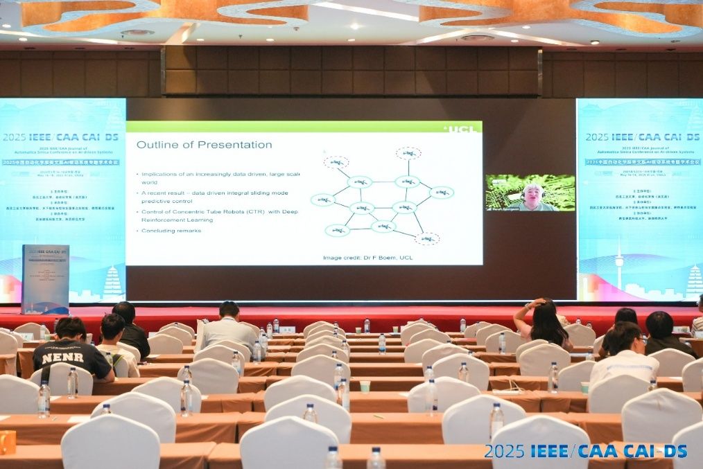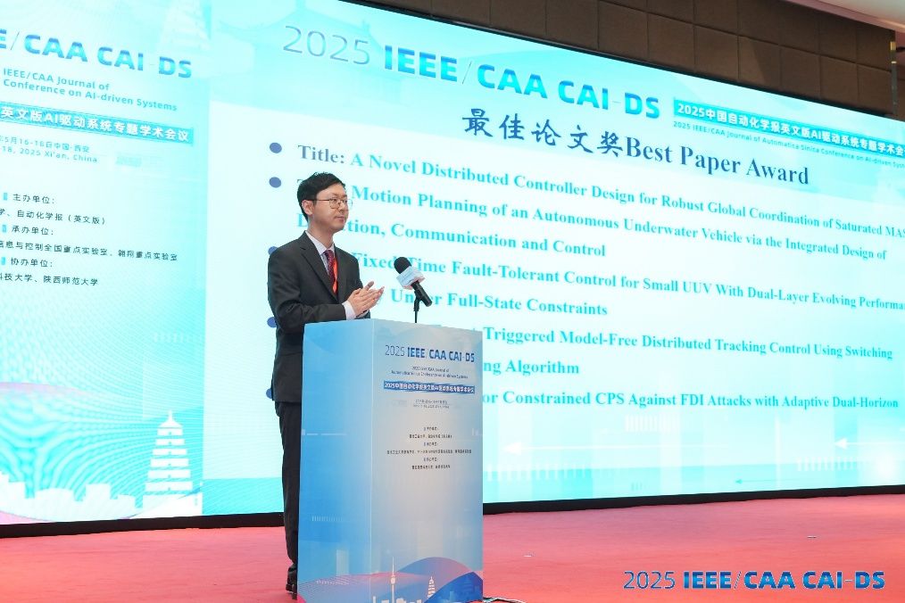 2025 中国自动化学报英文版AI驱动系统专题国际学术会议 (2025 IEEE/CAA CAI-DS) 于5月16至18日在陕西西安召开。本次会议由西北工业大学、自动化学报(英文版)主办,由西北工业大学航海学院、水下信息与控制全国重点实验室承办,西安建筑科技大学、陕西师范大学协办。会议旨在为广大科研工作人员、控制工程师和研究生提供一个学术交流平台,探讨当前AI驱动系统的研究热点与挑战,分享在智能建模、控制、优化与学习等方面的最新前沿进展。会议邀请了来自中国、澳大利亚、美国、加拿大、英国、瑞典等国家的院士和著名学者在大会主论坛交流最新研究成果,展开思想与智慧的碰撞,现场洋溢着浓厚的学术氛围。