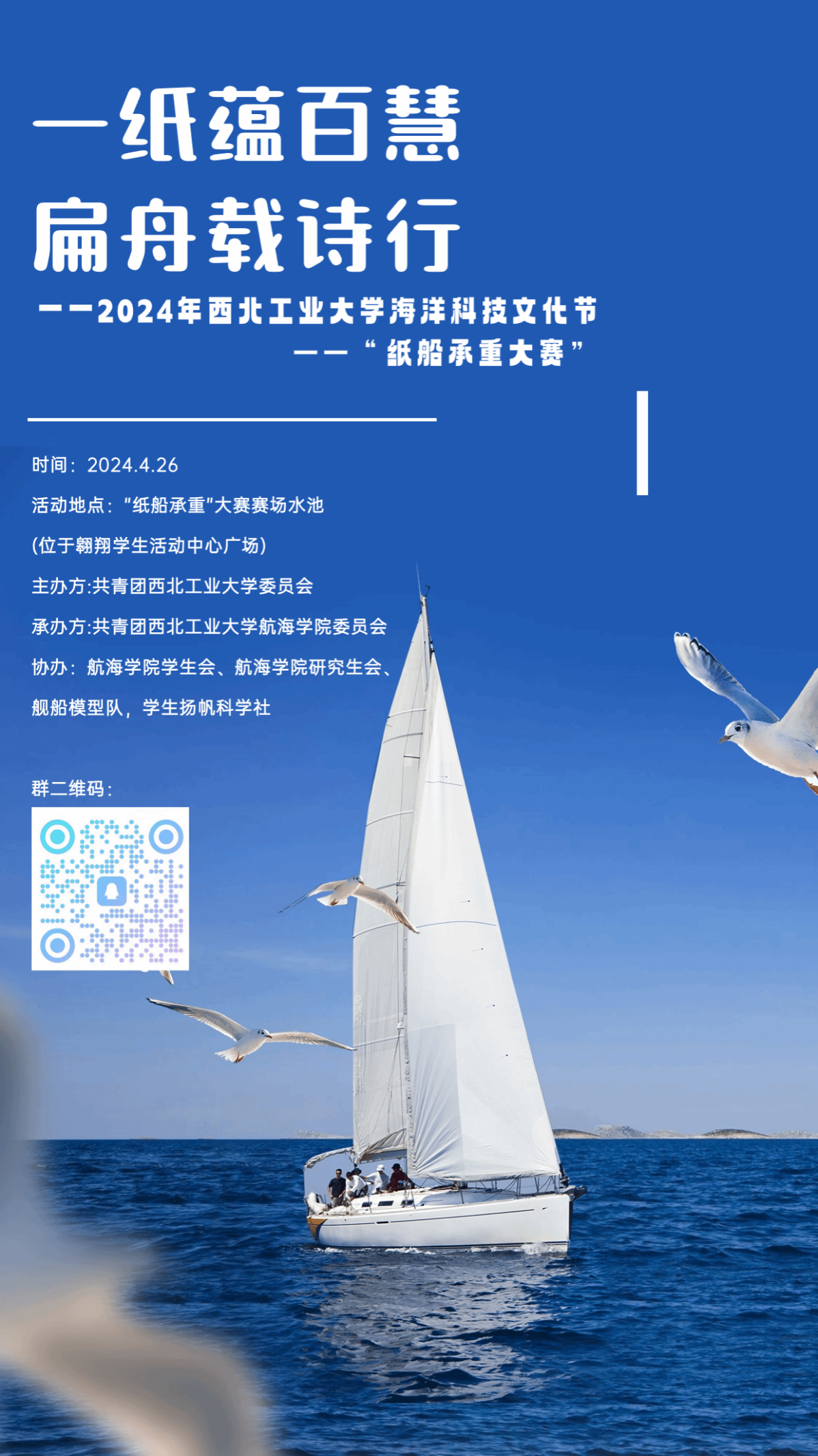 为了提高同学们的实践能力,丰富课余文化生活,延续校园科技文化传统,打造我校独特的“三航”文化特色活动,学校学院筹备开展2024年西北工业大学海洋科技文化节——“纸船承重大赛”。这一次,让你有机会巧手翻出梦中舸,妙慧融进纸作舟。