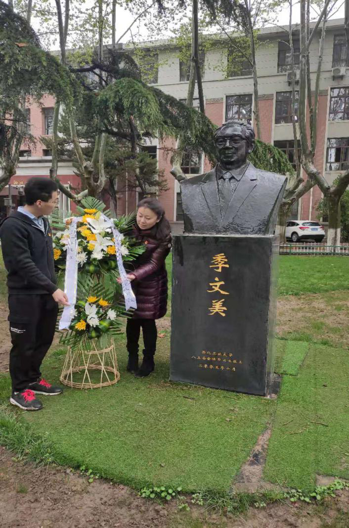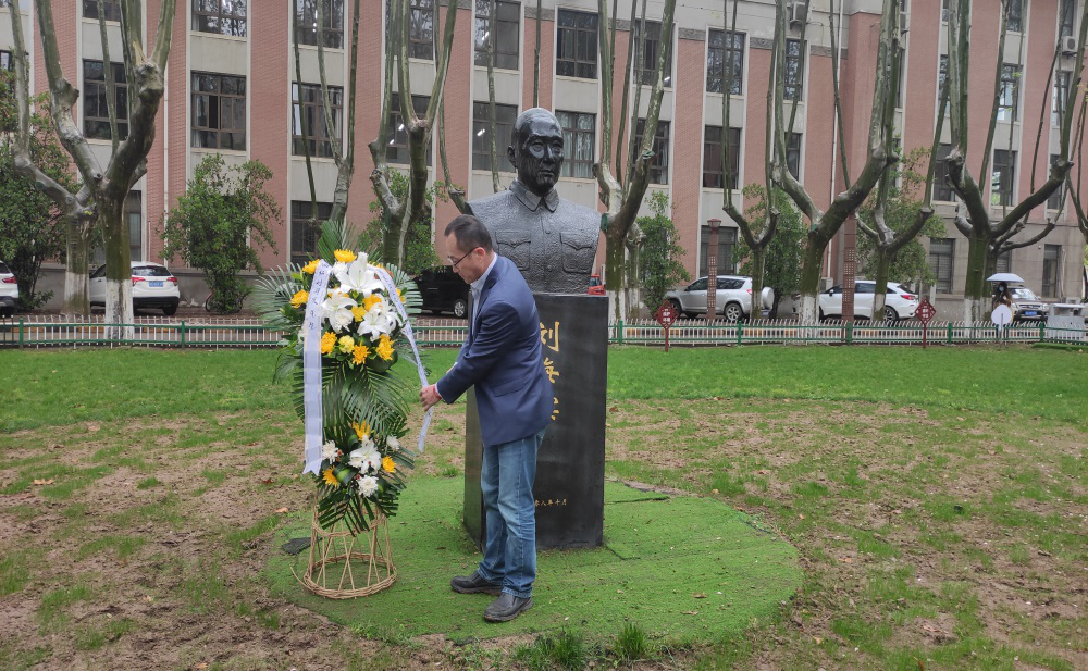回顾了老领导的生平事迹后,由航海学院党委书记孙华强,教育基金会副主任徐伟侠,校友会副主任刘江和学生代表分别向三位老领导的铜像敬献花篮,寄托我们的哀思,表达我们向先辈学习的决心。