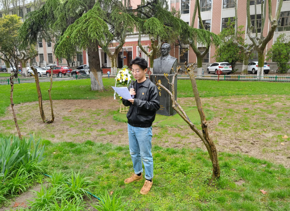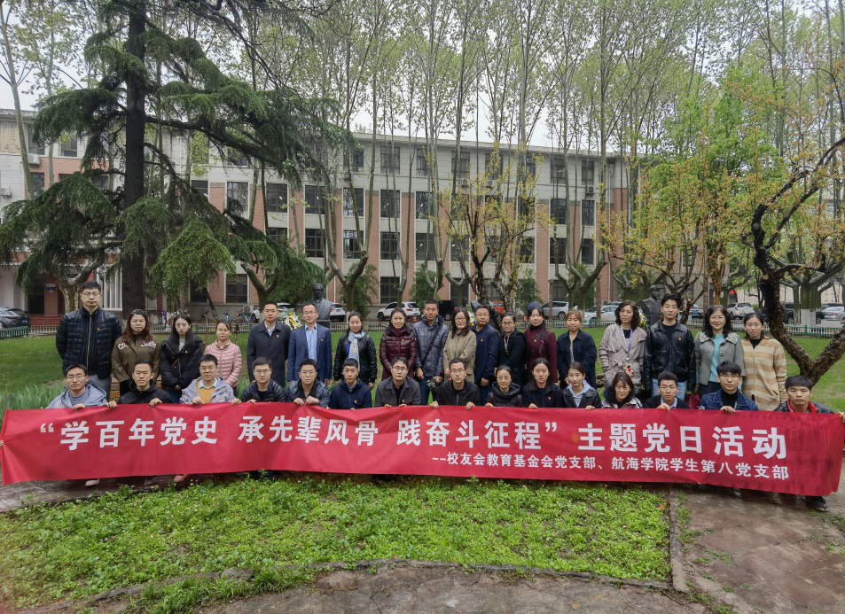 春风送花表哀思,青松滴翠寄深情。无限哀思无限情,清明时节祭先辈。4月2日上午,蒙蒙细雨中,由航海学院学生第八党支部和校友会教育基金会党支部共同举办的“学百年党史,承先辈风骨,践奋斗征程”主题党日活动在友谊校区桃李园举行。航海学院党委书记孙华强,教育基金会副主任徐伟侠,校友会副主任刘江,航海学院院长助理张龙等领导出席了本次活动,校友会教育基金会的同志和航海学院的学生党员同志们参加了此次纪念活动。