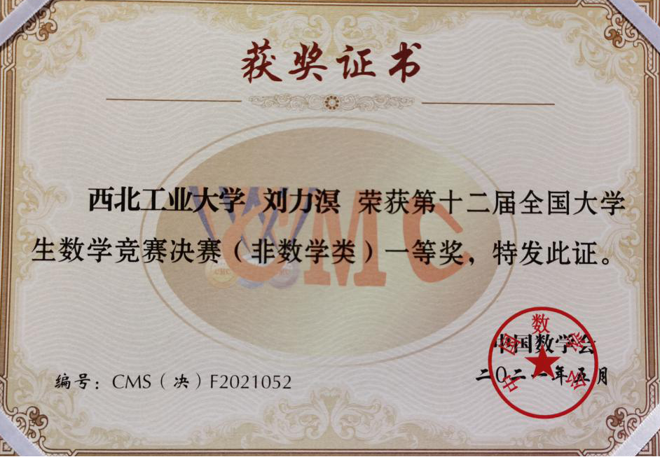 经过智慧的碰撞和激烈的角逐,西北工业大学航海学院刘力溟同学以优异成绩荣获第十二届全国大学生数学竞赛(非数学类)决赛一等奖,为海院学子参加全国大学生数学竞赛获得的最好成绩,本次比赛西北工业大学共获得3项一等奖(非数学类2项,数学类1项)。