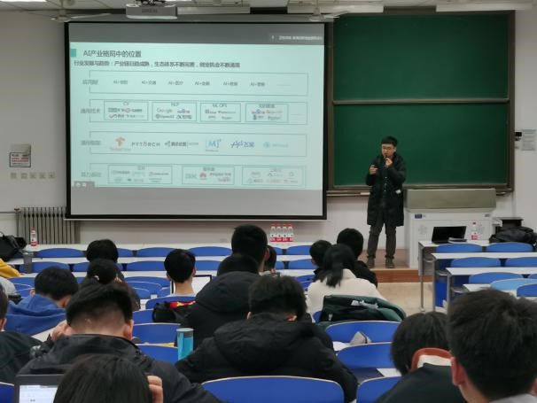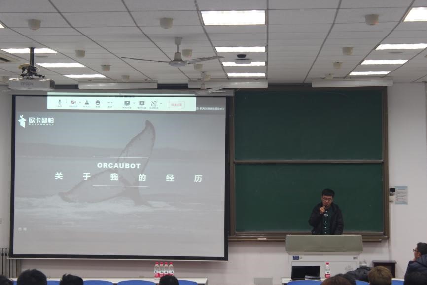 紧接着,朱健楠为我们讲解了在当前时间点下我们的机遇。现在是移动互联网的时代,时代的变革已经逐渐渗入我们的生活当中,和每个人的日常息息相关。我们要认清当前时代的行业趋势,走在最前沿的是AI+机器人的方向,这个方向下各个层次的行业格局已经基本形成,而在地面无人驾驶与空天无人驾驶格局已经形成的局面下,选择向海上无人驾驶的方向发展。而对于同学们来说,现阶段应该跟进了解行业的组成,找到适合自己的发展方向。