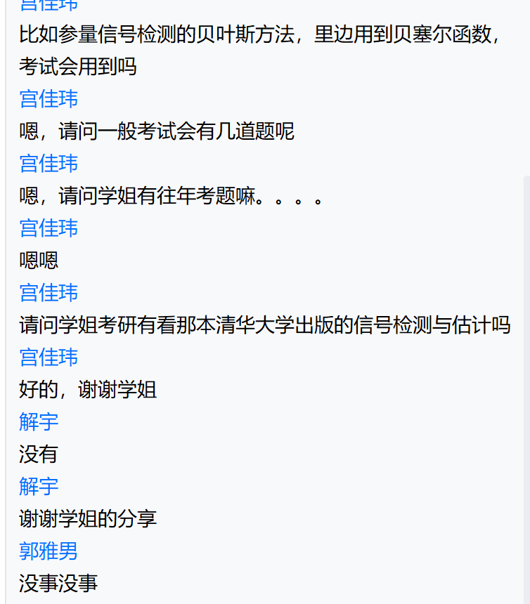 杜厚泽:听了学长和学姐们考研经验分享,我更加明确了自己在最后阶段努力的方向。当然,就像老师所说,学长学姐们的经验只能起到参考的作用,打铁还需自身硬,还需要我自己不断努力坚持,我相信好好准备复习一定能考研成功!