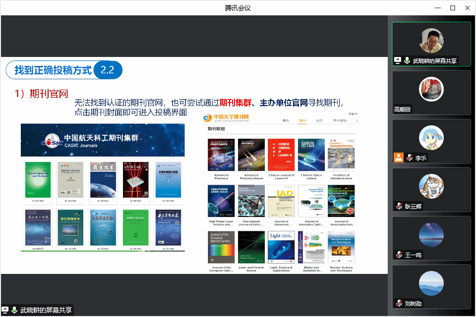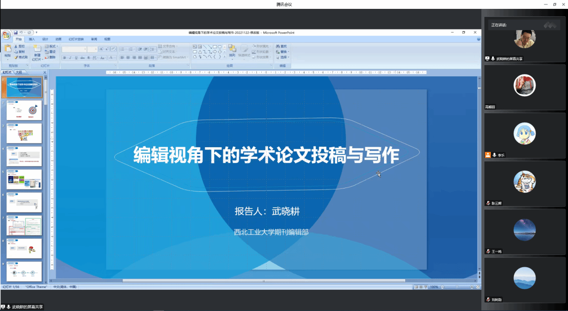 为了营造良好学术交流氛围,提高学院研究生学术论文撰写水平,11月29日下午17点,航海学院学业辅导站邀请西北工业大学期刊编辑部主任武晓耕老师开展经验分享会,通过线上会议交流的方式,跟同学们深入探讨科技论文写作技巧与投稿心得,受到在场师生的热烈欢迎。航海学院院长助理耿云辉老师,硕士研究生辅导员李乐老师、博士研究生辅导员张晓燕老师及学院各年级学生参加了本次交流分享会。