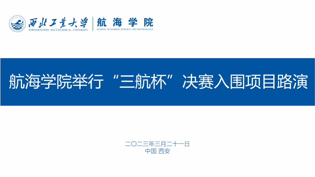 为进一步增强学生创新意识,提高科技竞赛水平,为西北工业大学第二十一届“三航杯”大学生课外学术科技作品竞赛(以下简称“三航杯”)决赛做好准备,2023年3月21日上午10时,“三航杯”决赛入围项目路演在航海学院实验教学中心召开。学院党委副书记王银涛、教学实验中心教师李道江、杜向党、牛云老师出席,航海学院所有“三航杯”决赛入选队伍参加。