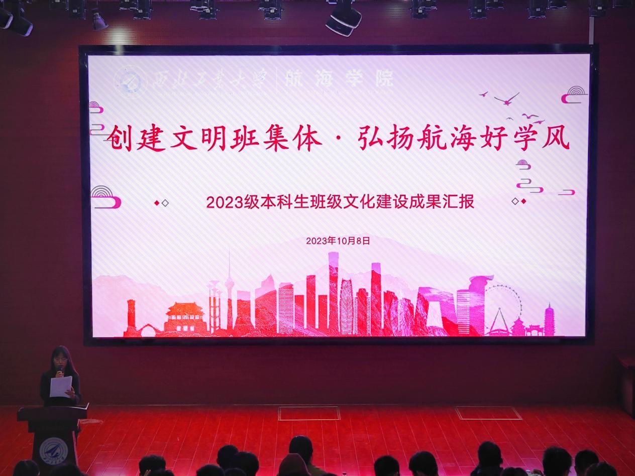 为加强大学生班级文化建设,提升班级凝聚力,营造健康向上的班级文化氛围,创造良好的育人环境,进一步落实新生入学教育工作,航海学院积极响应学校号召,开展2023级本科生优良班风学风创建活动。经过前期各班级丰富多彩的建设活动,学院于10月8日在长安校区教西D100报告厅举办主题为“创建文明班集体,弘扬航海好学风”的2023级本科生班级文化建设成果汇报活动。