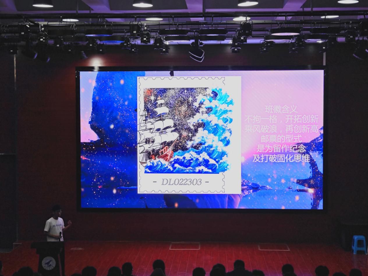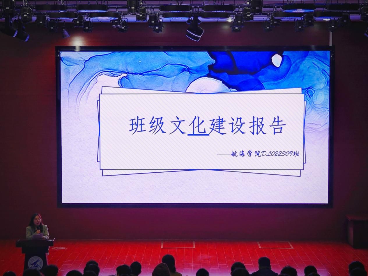 各班级代表围绕组织建设、思想政治教育、学风建设、班级管理、班级活动等内容对班级建设整体情况进行了汇报,通过生动的图片、图表和视频等多种形式展示各自班级的特色和亮点。尤其是班徽、班旗和班服的设计部分,各班级围绕其中设计的巧思、丰富的元素、深刻的寓意进行了深入解读,不仅体现了学院的“航海”特色,也展现了班级的良好风貌。此外,同学们也通过班歌合唱、诗歌朗诵、舞蹈表演等各种方式向在座评委和同学们展示班级风采,呈现出充沛的活力。