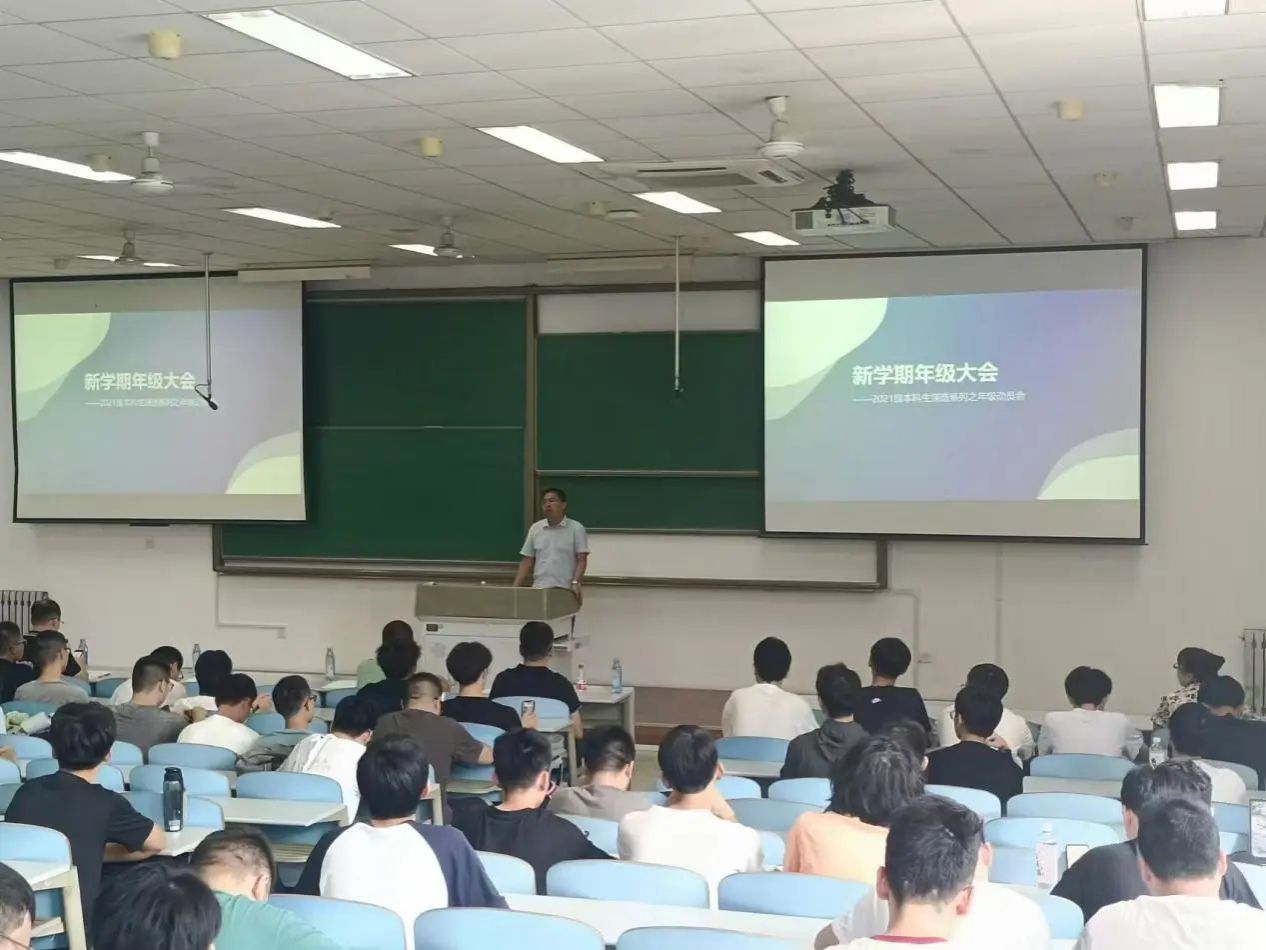 8月31日,航海学院召开了2021级本科生新学期年级深造动员会。党委副书记王银涛、院长助理耿云辉、任树伟,班主任代表牛云、辅导员赵维娜以及全体2021级本科生参加会议。会议由赵维娜主持。