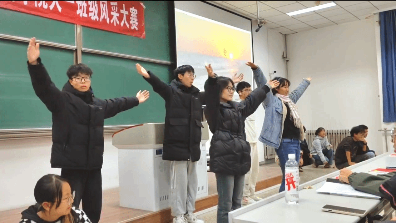 所有班级展示完毕后,胡浩老师对本次比赛进行点评,指出各班的优点和不足之处,同时对大一班级建设提出了建议。他提到,班级是一个紧密合作的集体,同学们要在集体中互帮互助、共同成长,各班也要继续做好班级建设,使同学们在紧张的学习生活之余,获得大学生活的归属感。