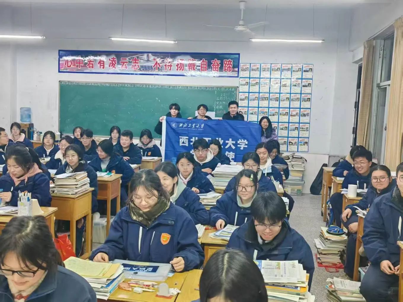 本次实践中,近70余支海院学子组织和参与在内的学生大使队伍回到高中母校,以形式丰富多样的活动组织,向高三学子介绍西工大校园和分享学习经验,助力更多学弟学妹圆梦高考。