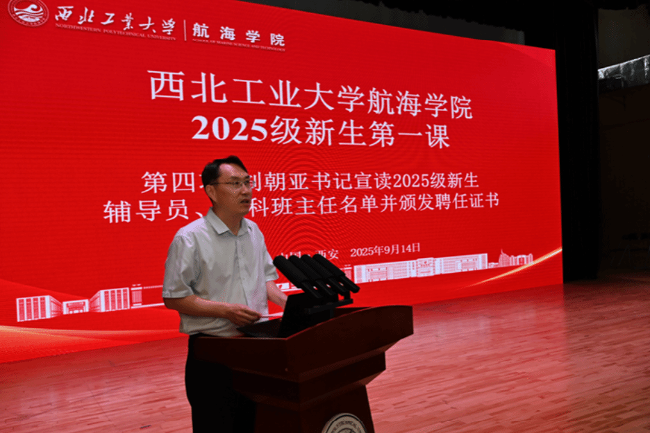 云天收夏色,木叶动秋声。伴着初秋的清爽气息,2025年9月14日,航海学院2025级新生第一课在长安校区南山艺堂拉开帷幕。学院院长潘光、党委书记刘朝亚、副院长曾向阳、党委副书记王银涛出席活动,2025级新生辅导员、本科班主任以及教学部、学院办公室教师代表与全体2025级新生齐聚一堂,共启新篇。活动由王银涛主持。