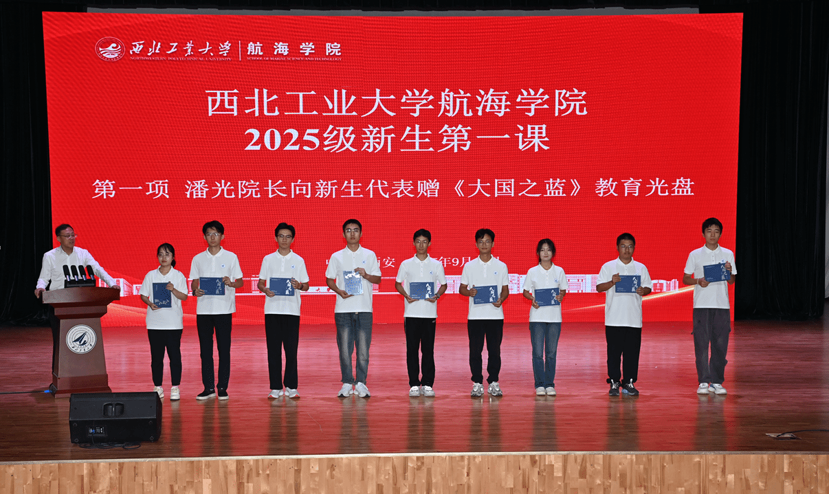 以光盘为礼,载期望之情。会议伊始,潘光向新生代表赠《大国之蓝》教育光盘。这张光盘不仅刻录着二十年前航海先行者的创业征程,更以话剧为载体,将“敢为人先 攻坚克难 团结协作 无私奉献”的航海精神娓娓道来,让先辈初心与时代担当在光影流转中薪火相传。