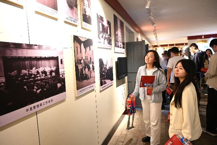 寻迹红色热土,感悟精神伟力。 9月27日中午,实践团队顺利抵达延安,在这片孕育中国革命的圣地上,开启了沉浸式红色探访之旅。首站杨家岭革命旧址中,中央大礼堂在苍松翠柏的环抱间巍然矗立,礼堂内陈设如旧,仿佛仍在回响着中共七大时指引方向的历史强音。随后,师生们走进毛泽东、朱德等老一辈革命家曾经居住的窑洞,目睹简朴至极的生活用具,真切感受到艰苦岁月里共产党人那份坚定的理想信念与“自力更生、艰苦奋斗”的崇高精神,大家对延安精神的内涵有了更为深刻和具象的理解。