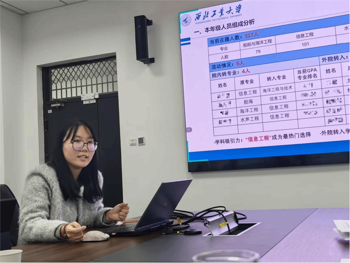 各年级本科生辅导员依次汇报本年级学业分析情况。2022级辅导员冯洲重点汇报了大四学生学业预警处置、保研与考研备考推进情况,通过考前辅导、思想鼓励、后勤保障等举措助力学生顺利毕业与升学;2023级辅导员王夏荷梳理了年级学生组成、专业流动、挂科科目分布等情况,针对降级学生帮扶、重点挂科课程提出了多项具体帮扶措施;2024级辅导员胡浩汇报了年级挂科人次、学业困难类型,并汇报了已建立的学业困难生台账、一对一谈话沟通等工作。