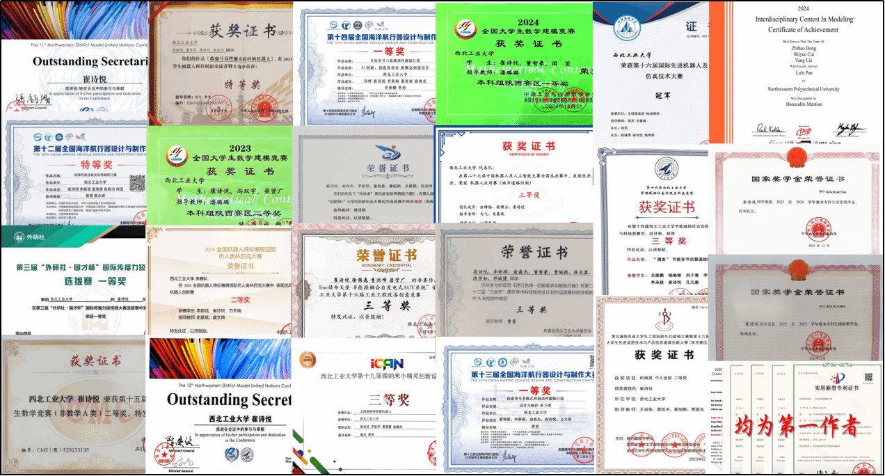 崔诗悦,中共党员,船舶与海洋工程专业2022级本科生,连任两年院团委宣传部部长,获评“2025年优秀大学生标兵”(全校仅10人)、国家奖学金(连续三年)。她机电双修,三年共修读198学分,44门课程满绩,学年绩点4.04/4.1,稳居专业第一,斩获国际、国家等各级奖项70余项。科研上,她是校足球机器人基地成员,带领团队自主研制两台航行器,以第一作者产出1篇IEEE论文、4项专利,拿下国际先进机器人及仿真技术大赛冠军等11项机器人赛事荣誉。工作中,她助力学院获评“五四红旗团委”,个人获优秀共青团干部称号;积极参与实践与志愿活动,获评青年志愿先锋。此外,她是西工大模拟联合国基地成员,参与5场模联赛事,获评“杰出代表团”“Outstanding Secretary”等荣誉;是校游泳队成员,斩获30余项体育赛事奖励;也是大学生艺术团成员,涉足音乐剧、主持人、合唱、DJ,文体全面发展。涉猎多个领域,她坚持突破自我,用热爱与担当诠释了新时代大学生的卓越风采。