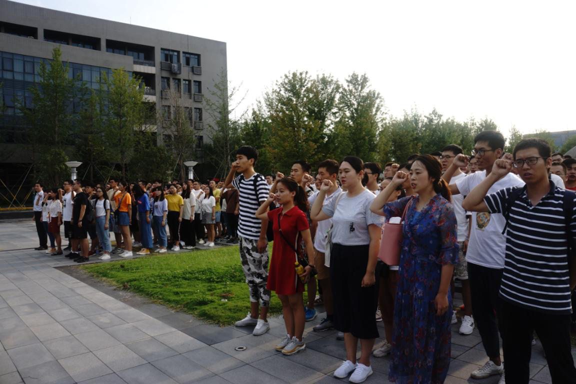 8月30日下午17时许,长安校区何尊广场上校旗招展,航海学院2019级研究生新生列队肃立,举起右拳开展新生入学宣誓活动。作为此次专题教育最后一项活动,学院院长助理张龙,辅导员庆晓勇、廉杰、杜鹏四位老师一起到场见证。2019级新生代表夏琪琪同学领誓,“我们在西工大校旗下郑重宣誓:严守‘公诚勇毅’校训,践行‘三实一新’校风。从入学之日起,踏踏实实学习,勤勤恳恳研究,认认真真做事,用实际行动为校徽增光添彩,绽放新时代工大学子的灿烂光华……”