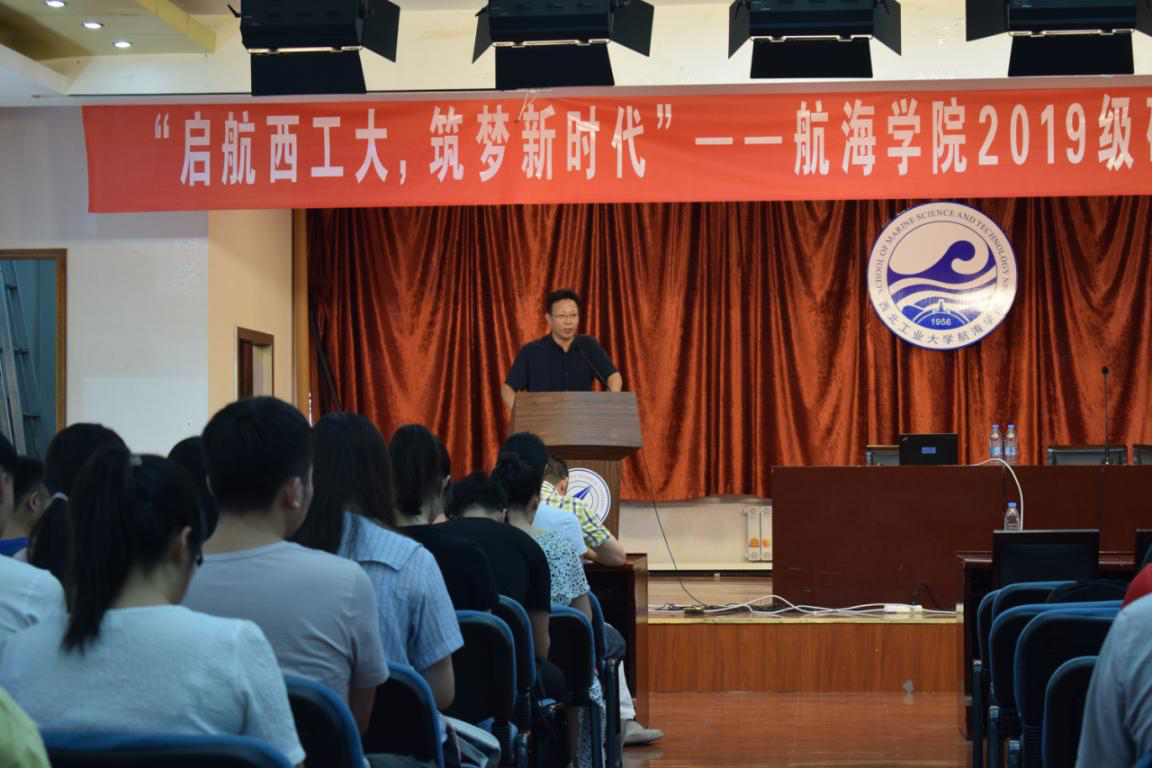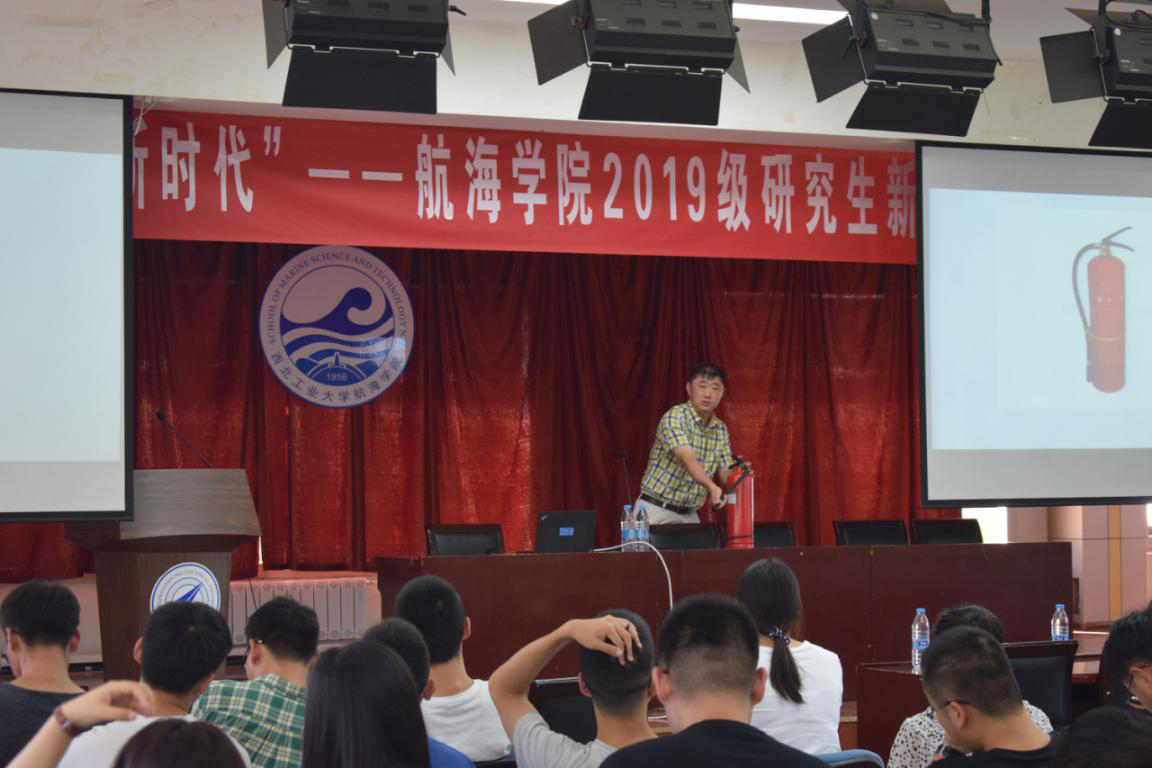 8月29日下午,在航海学院东配楼大教室,杨亮副院长为2019届研究生新生讲规范、话安全。他提示新生们:“进入校门万千事,安全教育第一条。学好各项规范守则,树牢安全保密观念;注意人身财产安全,远离网络贷款陷阱;合理规划出行路线,避免交通事故发生;牢记消防减灾常识,确保防火用电安全。”