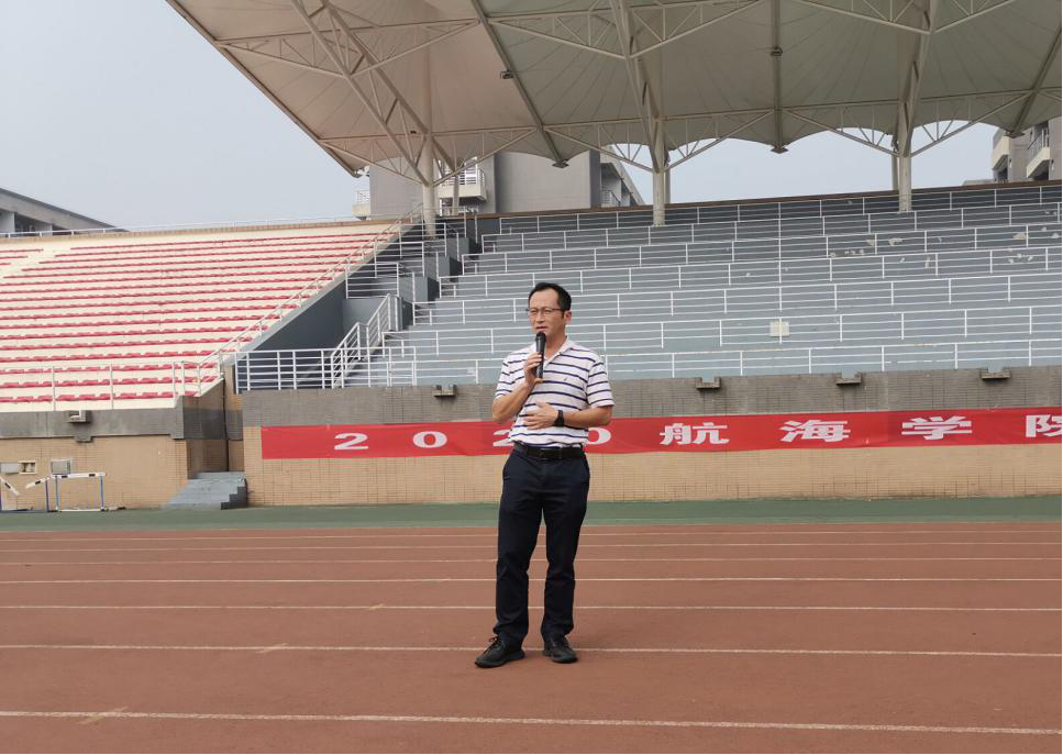 为积极响应党的十九大的号召,深入贯彻落实习近平总书记关于体育强国建设的重要指示精神,广泛开展全民健身活动,加快推进体育强国建设,同时以实际行动积极迎接即将于明年在西安召开的第十四次全运会,航海学院2020年新生运动会于9月26日在长安校区云天苑操场隆重举行。学院团委与学生会结合疫情防控新常态下学校的各项有关通知要求,完善相关环节与预案,确保了运动会的如期顺利举办。学院党委书记孙华强、党委副书记王银涛,学生事务主管崔晓,2020级辅导员崔晓东出席了运动会开幕仪式。