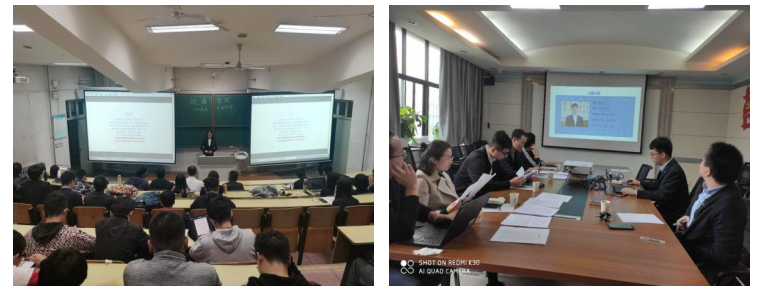 各个答辩人按照顺序就自己的学习成绩,竞赛成果,科研经历和社会活动等饭方面的成果向评委老师做汇报,并回答评委老师的提问。最后答辩综合多位评委的审评结果确定最终人选。
