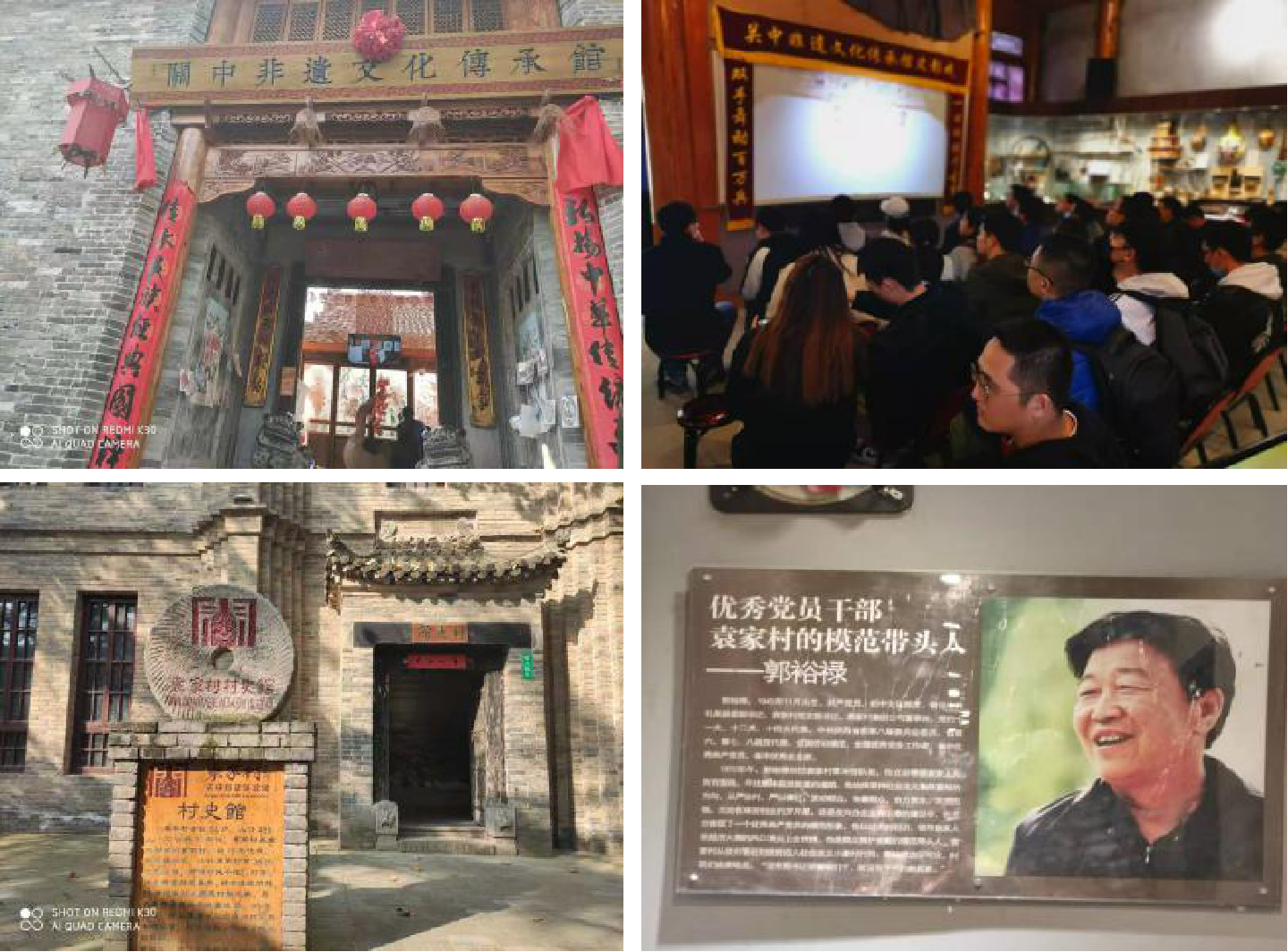 下午,同学们参观了非遗文化传承馆与村史馆,在这里同学们参观了传统观众民宅,观看并学习了皮影表演。在村史馆中同学们了解了袁家村发展历程,学习了郭裕禄书记带领人民脱贫致富的事迹。
