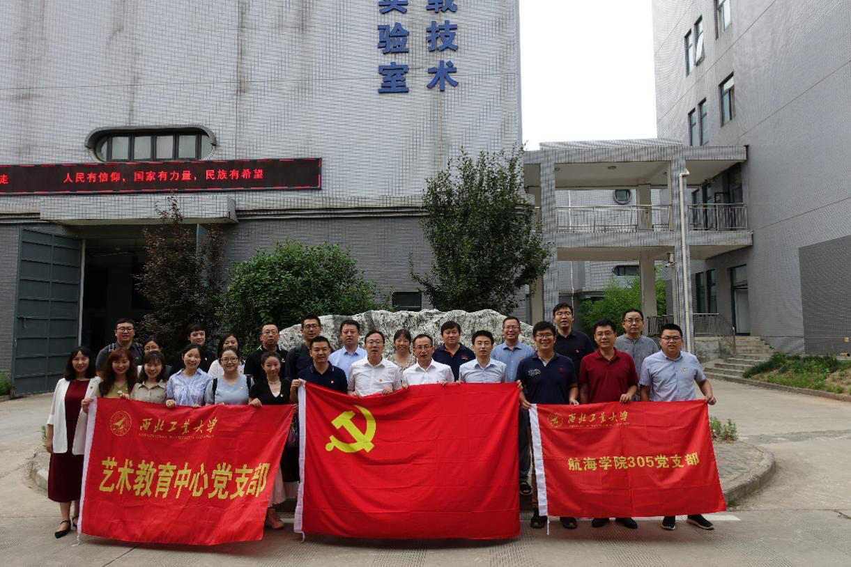 正值中国共产党成立100周年之际,为进一步促进基层党组织工作质量提升,实现党支部在结对共建活动中优势互补、共同提高目标,增强党组织内在发展动力与活力,丰富活动组织形式,2021年7月1日,艺术教育中心支部书记、副主任台炳龙等一行14人来西北工业大学航海学院与省级党建工作样板支部航海学院305党支部共同开展联合主题党日活动并举行党建共建座谈会。航海学院党委书记孙华强、院长潘光出席活动,双方支部全体成员与青年教师代表参加,活动在西北工业大学长安校区无人水下运载技术工业和信息化部重点实验室5楼会议室进行,由305党支部书记刘静主持。