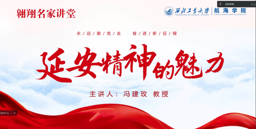 2022年10月14日,中国延安干部学院的冯建玫教授做客翱翔名家讲堂,为西北工业大学师生带来主题为“延安精神的魅力”专题报告,报告会由航海学院承办,院长助理耿云辉主持。会议伊始,耿云辉对冯建玫教授来到翱翔名家讲堂表示欢迎,并为在线师生介绍冯建玫教授的研究方向与学术成就。