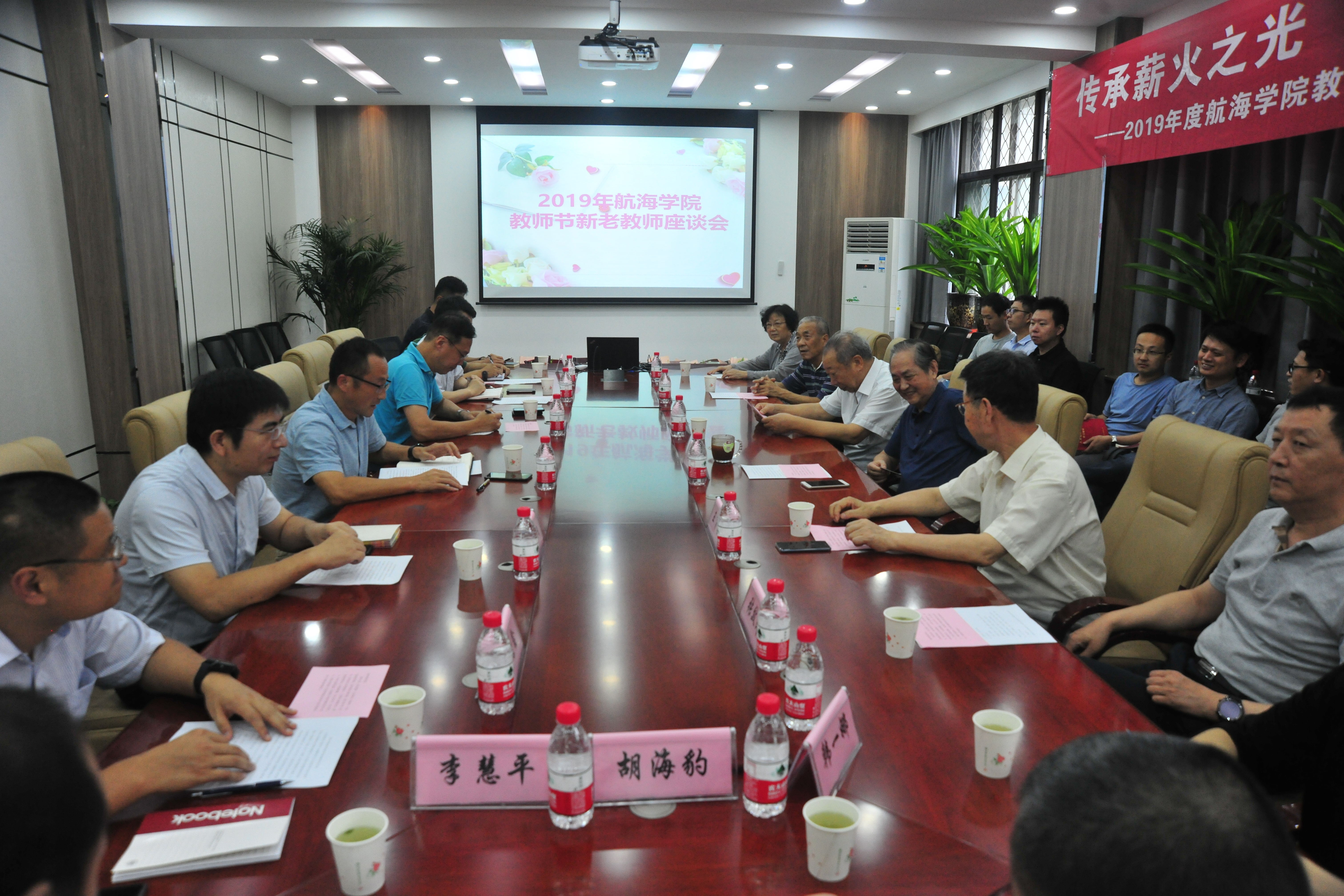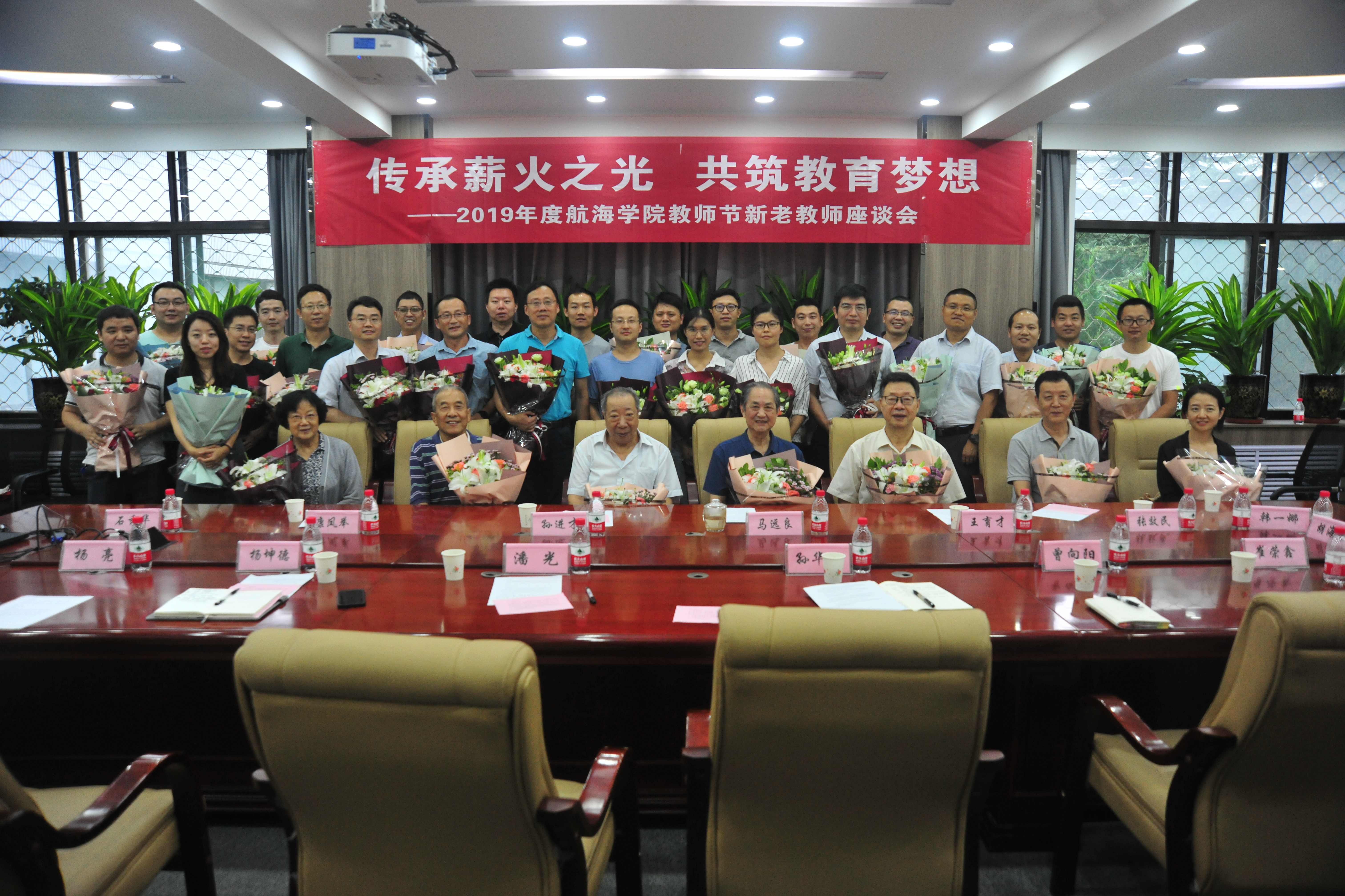为庆祝第35个教师节,根据教育部《关于做好庆祝2019年教师节有关工作的通知》和陕西省教育厅《关于组织开展教师宣誓活动的通知》(陕教师办〔2019〕26号)精神,加快年轻教师队伍建设,充分发挥骨干教师的“传、帮、带”作用,9月9日下午14:30,航海学院在201会议室举行“传承薪火之光,共筑教育梦想”主题教师节新老教师座谈会。马远良院士、退休老教师代表王育才教授、康凤举教授、孙进才教授、石秀华教授等应邀出席,学院领导班子、中青年教师代表及近两年新进教师等30余人参加了会议,会议由航海学院党委副书记孙华强(主持工作)主持。