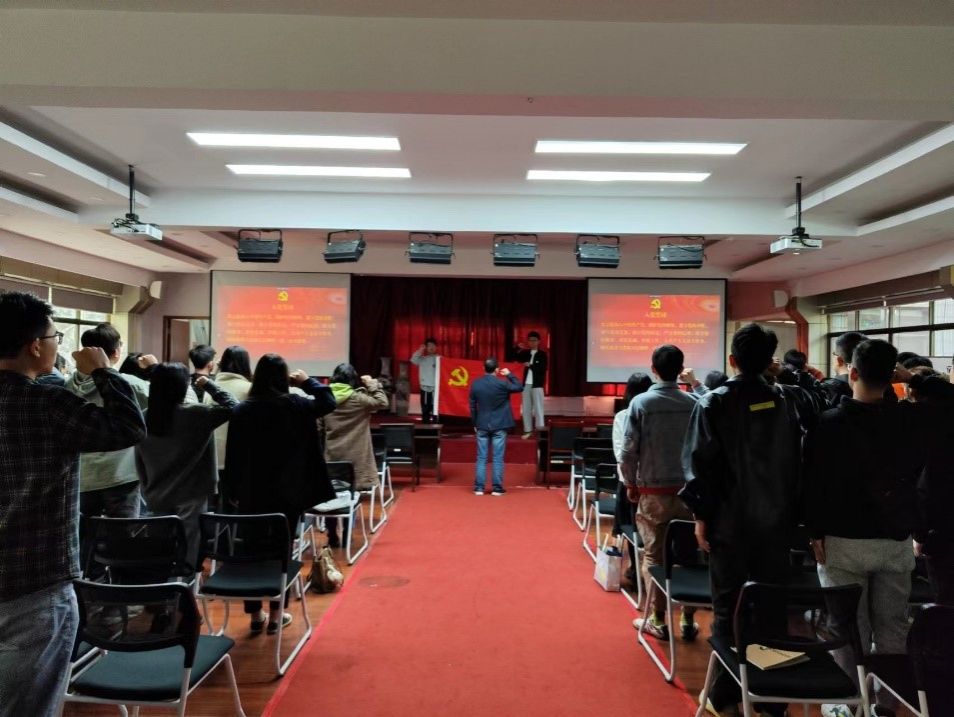 最后进行入党誓词的宣誓,大家怀着兴奋又激动的心情重温了入党誓词,庄严地举起右手郑重宣誓,大楼里回荡着激昂的声音。这是2023届硕士研究生对鲜艳党旗的承诺,对中国共产党的忠诚,对自身使命的坚定,和对国家人民的一片赤诚。