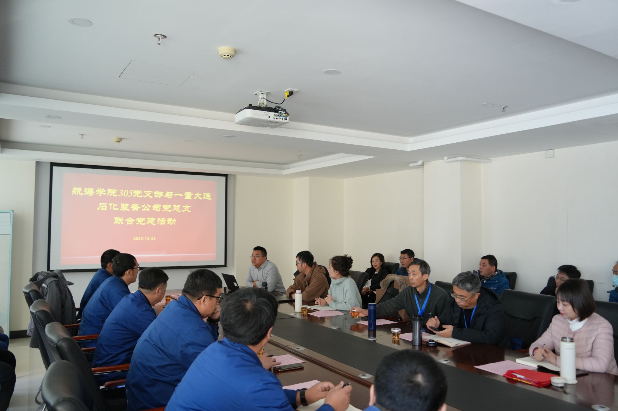 为深入学习贯彻习近平总书记视察哈尔滨工程大学时的重要讲话精神,全面贯彻党的二十大精神,坚守服务国防使命,紧贴强国强军需要,增强党支部的凝聚力和战斗力,2023年12月22日,“第三批全国党建工作样板支部”航海学院305党支部与一重大连石化装备公司党总支于一重大连核电石化公司前盐基地重点项目研制现场开展联合共建活动。一重大连石化装备公司党总支书记朴明皓、某重点项目攻关同志、航海学院305党支部书记施瑶、支部党员代表和部分学生代表参加活动,活动由施瑶同志主持。