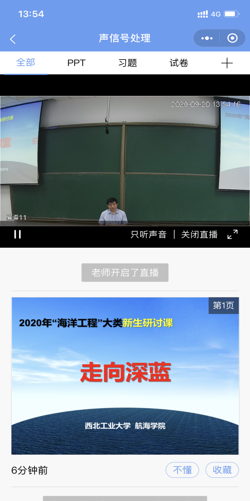 近日,航海学院面向海洋工程大类学生开设的“走向深蓝”特色研讨课程再次启航。9月20日下午,在长安校区教西D101教室航海学院2020年“海洋工程”大类新生研讨课开讲,副院长曾向阳教授为海院学子带来了本学期“走向深蓝”第一讲,课程全程线上线下同步进行,学生可以使用雨课堂同时线上收看。