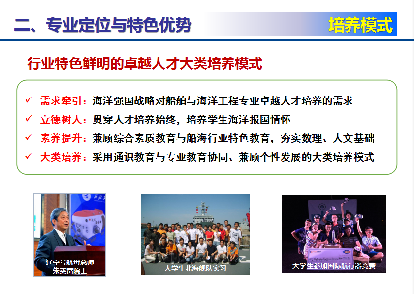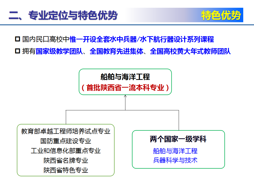 党老师说到航海学院船舶与海洋工程专业是首批陕西省一流本科专业,拥有国家级教学团队、全国教育先进集体、全国高校黄大年式教师团队,教学实力雄厚,拥有特色鲜明的人才培养模式,使用创新教育教学手段,激发学生自主学习动力,以实践育人、科教协同育人,实施全周期工程实践教育,以国际学术交流、交换培养、多元文化交融、联合主办国际会议等多元化英文授课、多形式联合培养,稳步提高国际化水平。
