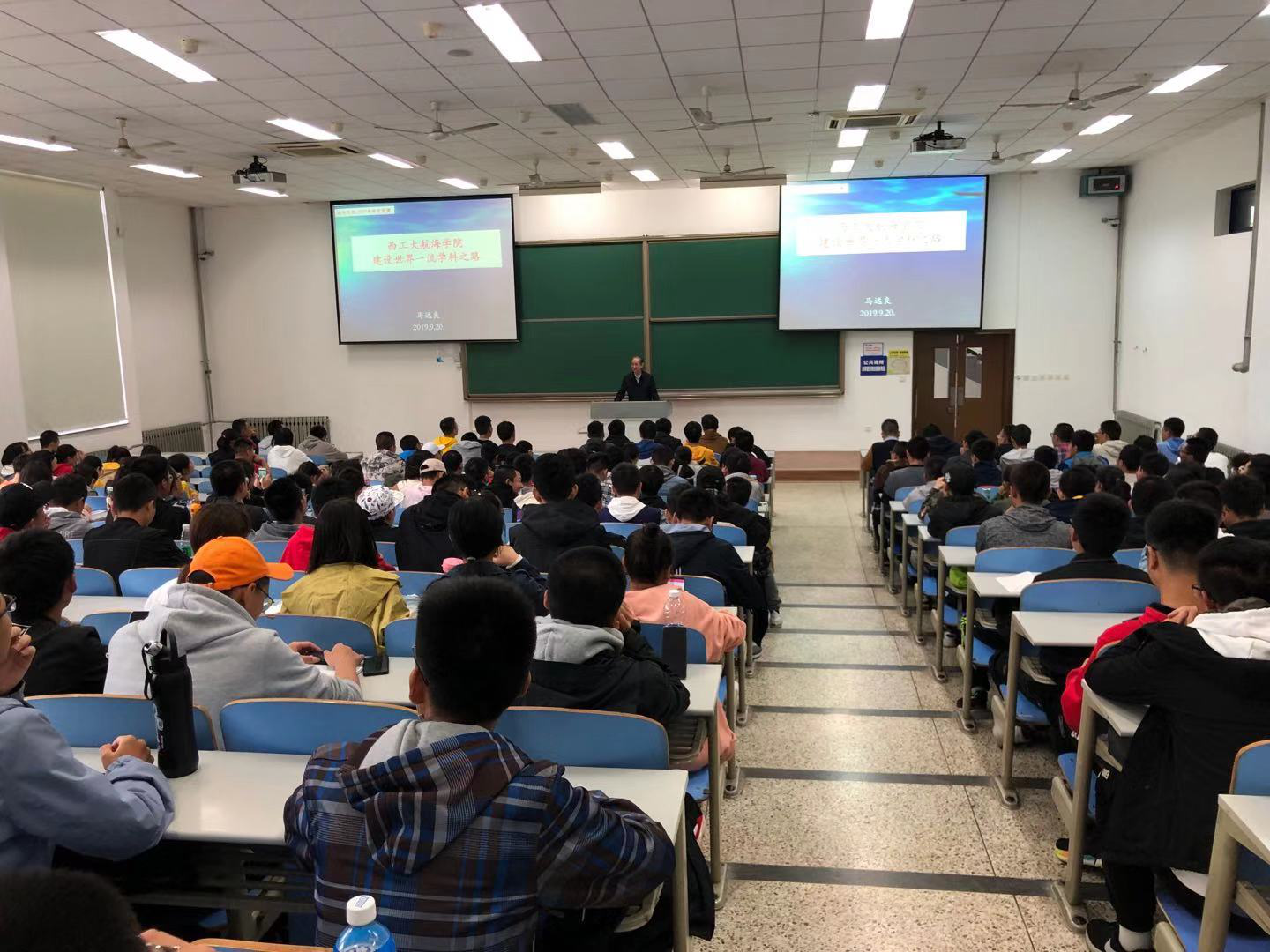 9月20号,马远良院士以“西北工业大学航海学院一流学科之路”为题,在长安校区为220余名大一新生讲授“走向深蓝”第一堂课,并向同学们提出了殷切期望。马院士的激情讲授受到了同学们的热烈欢迎,令许多同学印象深刻。一位同学留言道:“我怀着无比激动的心情发这条动态,求学路上最光辉的时刻来了……更加坚定了我认认真真听讲,扎扎实实学习,为海院和国家努力奋斗的信念”。