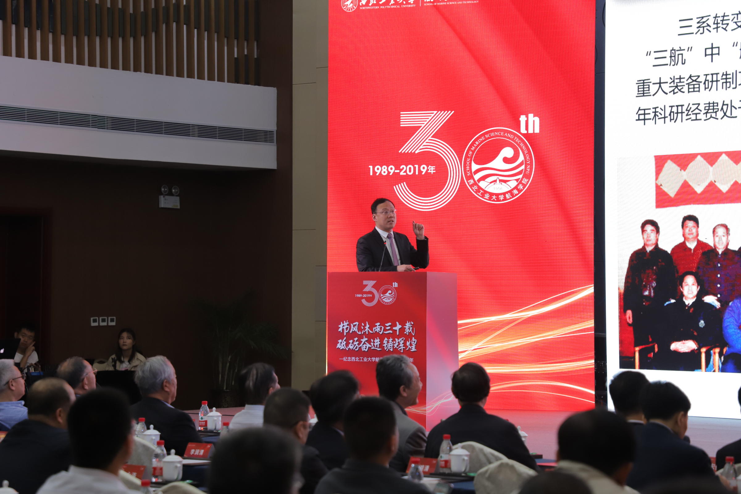 上午9:30,航海学院在西北工业大学长安校区南山苑举行纪念建制30周年庆典大会。与会嘉宾、领导、院友代表及部分师生代表共聚一堂,忆昨日峥嵘岁月、话今日学院变化、谋未来发展大计,表达对航海学院的美好祝愿。